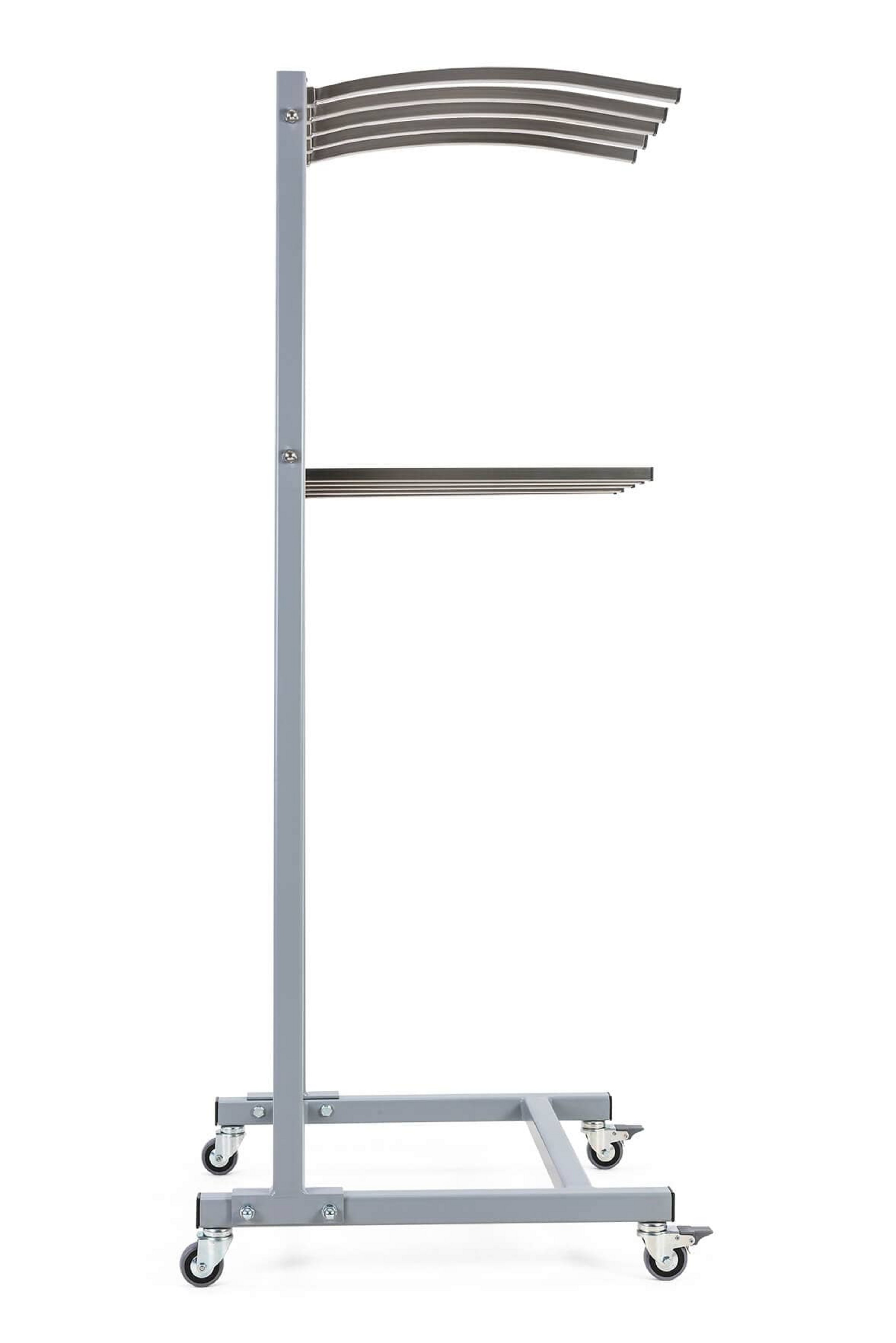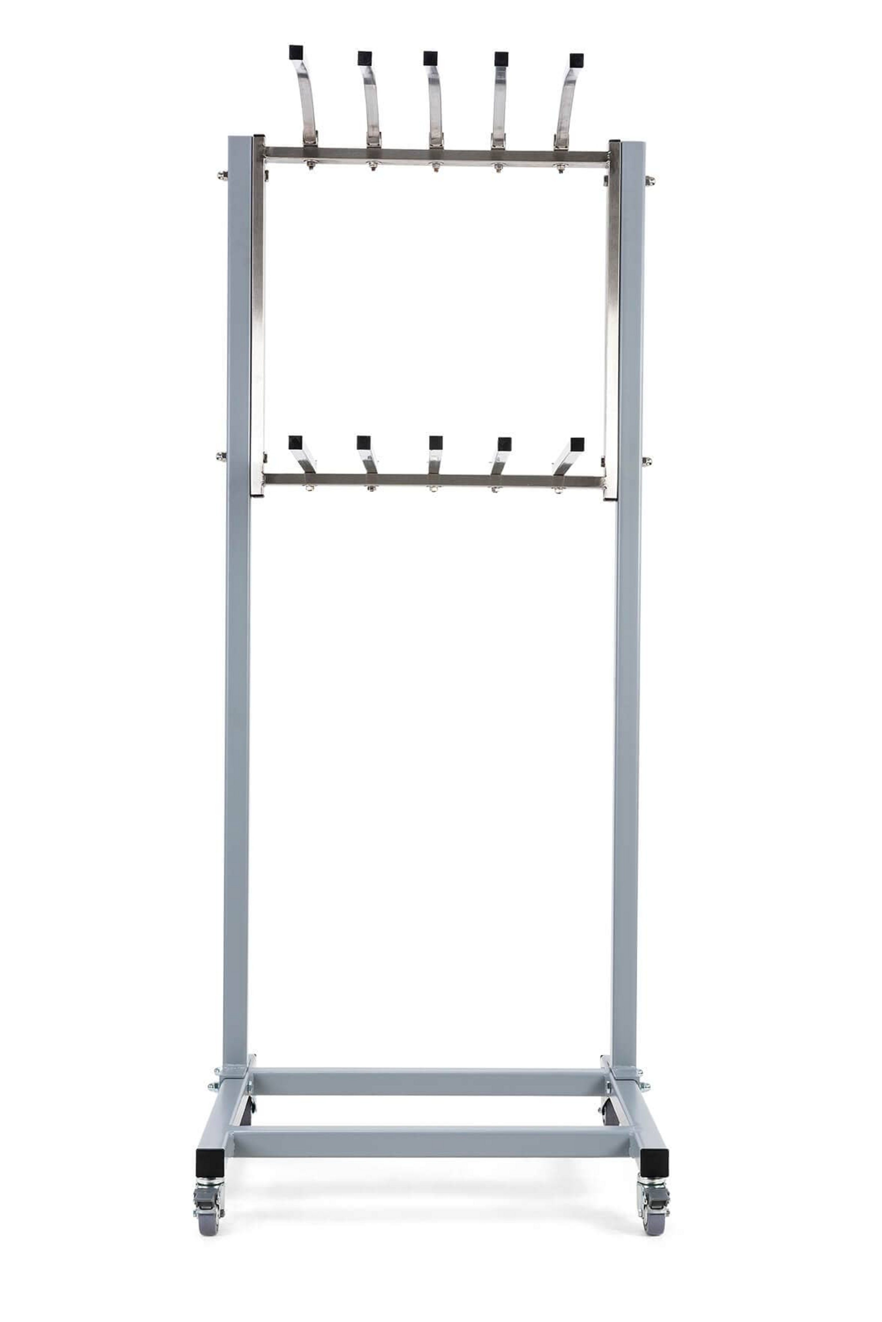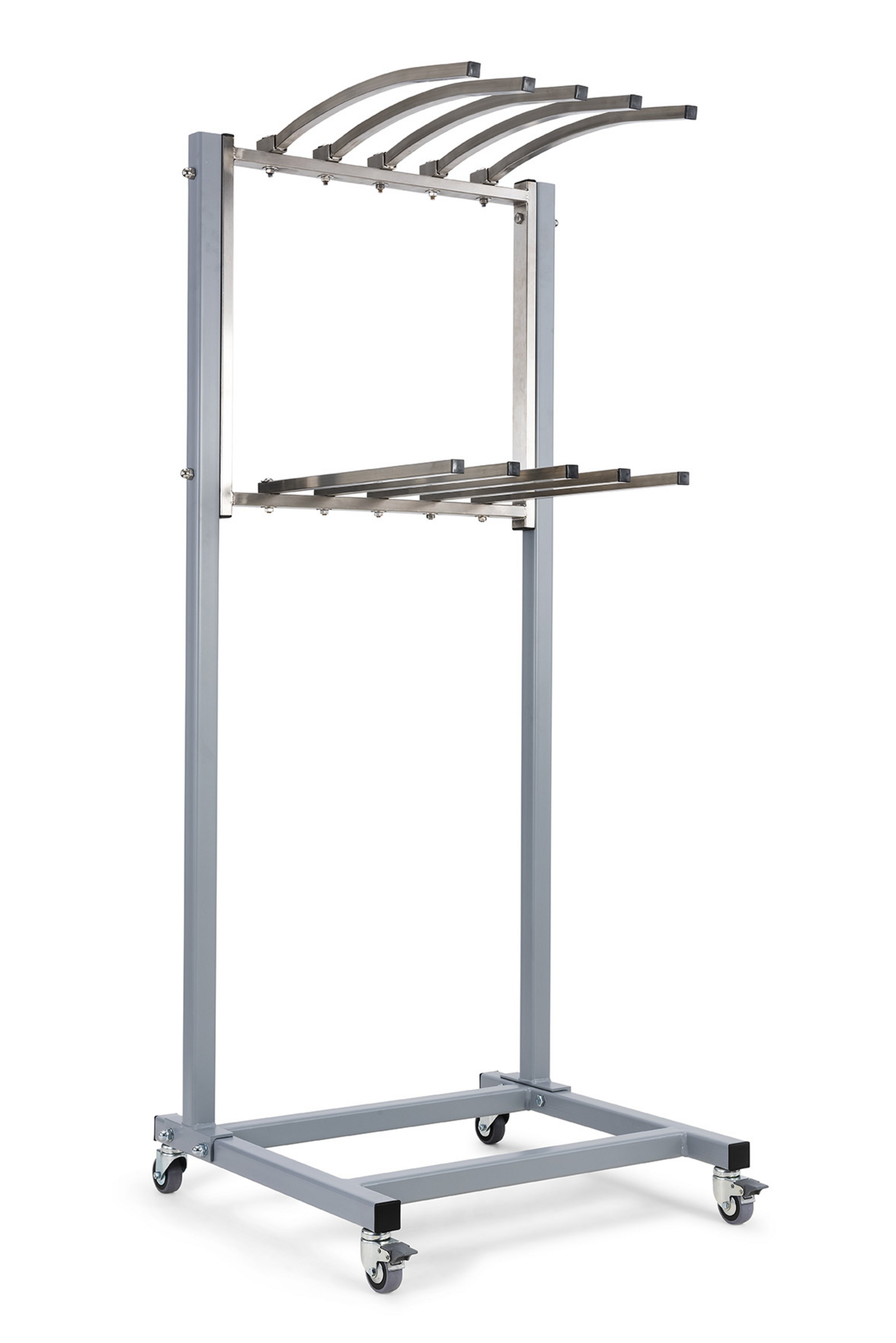 Wir bieten Schürzengestelle an, die für die Aufbewahrung von 6 bis zu 12 Schürzen/Röcke gemacht sind und besonders oft in der Radiologie eingesetzt werden. Die Gestelle sind auf feststellbaren Rollen montiert und ermöglichen so eine simple sowie flexible Handhabung.