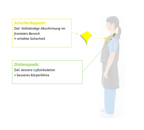 Da die körperliche Belastung beim Tragen eines Strahlenschutzes sehr hoch ist, bietet der Hersteller SFX eine Ergo-Special Reihe an. Die Ergo-Special Schürzen haben integrierte Pads und Polster, die das Gewicht der Schürze besser verteilen. Ebenfalls unterstützen sie die Luftzirkulation und Passform der Schürze.